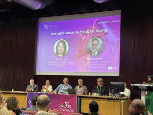 Ana Žuvela, member of the ENCATC Board and ScientificCommittee, participated at the congress in her role as chair ofthe Working Group on Cultural Rights, where she led thegroup’s work and presented the main findings that will beshared at UNESCO’s World Conference on Cultural Policiesand Sustainable Development – MONDIACULT 2025.