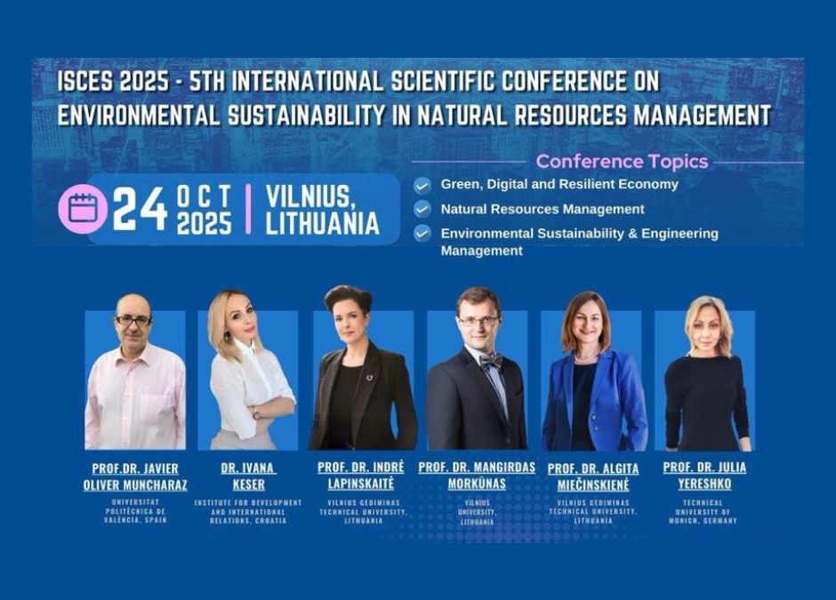 ISCES 2025 je međunarodno konferencija usmjerena na napredak u istraživanju i primjeni u ključnim područjima kao što su održivost, kružno upravljanje i inženjerstvo okoliša. Ovogodišnju konferenciju organizirali su Tehničko sveučilište Vilnius Gediminas (Vilnius Gediminas Technical University) i Europski institut za ekonomiju (European Institute of Economics), u partnerstvu s Nacionalnim sveučilištem za vodno i okolišno inženjerstvo (National University of Water and Environmental Engineering).