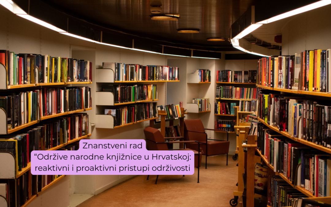 Rad analizira ulogu narodnih knjižnica u Hrvatskoj u kontekstu održivog razvoja kroz dvije komplementarne dimenzije: internu (reaktivnu) održivost, koja se odnosi na institucionalno poslovanje knjižnica, i eksternu (proaktivnu) održivost, koja obuhvaća njihovu društvenu ulogu u promicanju održivosti. Istraživanje se temelji na mješovitom metodološkom pristupu koji uključuje i anketu provedenu na uzorku od 99 narodnih knjižnica.