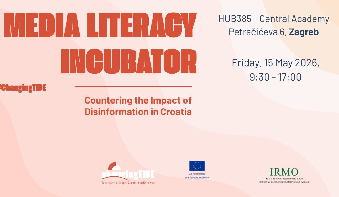 The call for applications to the ‟Media Literacy Incubator: Countering the Impact of Disinformation in Croatiaˮ is now open. The event will take place on Friday, 15 May 2026, in Zagreb, bringing together young people interested in media literacy, democracy, and critical thinking. The application deadline is 26 April. The Media Literacy Incubator is part of the ‟ChangingTIDE – Changing Together to Inform, Debunk and Empowerˮ project, funded under the EU CERV-2025 programme. It aims to strengthen participants’ ability to recognise and counter disinformation, while encouraging active democratic engagement. Through a combination of expert-led panel discussion and interactive workshop, participants will explore the impact of disinformation on society and develop practical skills for analysing media content.